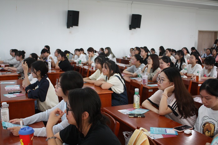 为了增强女性自我保健和疾病防治意识,帮助女性树立健康生活理念,关心关爱在校女大学生的身心健康,9月26日中午,外国语学院在50号楼503报告厅举办女性健康知识科普讲座。此次讲座特邀常州西太湖医院妇科主任侯洁、皮肤科主任杨利和皮肤科医生郭海玲担任主讲,来自外国语学院各年级百余名女生聆听了此次讲座。