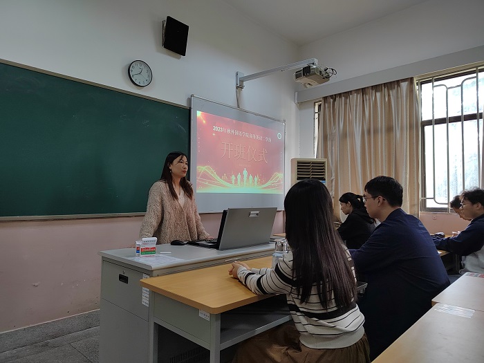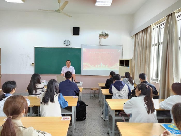10月8日中午,外国语学院在外语楼108教室举行2023秋商务英语二学历班开班仪式。学院副书记兼副院长王志贤、副院长李世存,培训班班主任苗支林及2023秋商务英语二学历班全体学生参加了开班仪式。