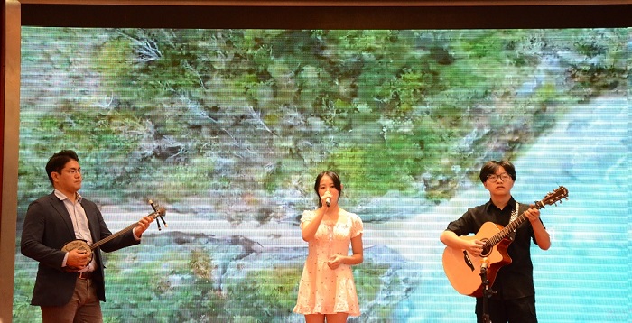 外国语学院选派21日语1毛雅慧同学和21日语2杨子叶同学参加演讲比赛,她们以优美的日语发音和声情并茂的演讲双双夺得本科组特等奖。日语教学(微课)大赛环节,外国语学院日语系华雪梅老师和崔睿岩老师分获一等奖和二等奖。21日语2闵盛妍同学和22媒体1王仁浩同学搭档演出的日文歌曲弹唱节目获得才艺表演项目三等奖,并受邀于开幕式文化交流环节演出,现场博得阵阵热烈掌声。