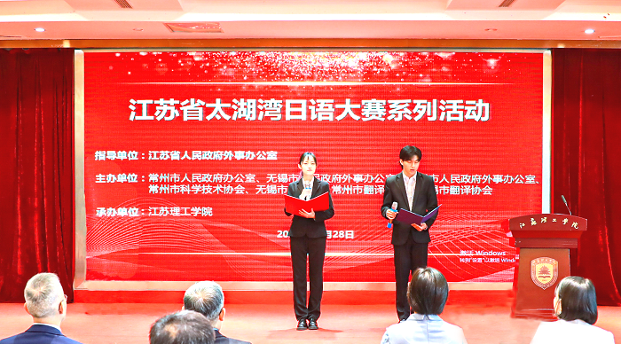 10月28日,2023年江苏省太湖湾日语大赛决赛于江苏理工学院成功举办。大赛由江苏省人民政府外事办公室指导,由常州市人民政府外事办公室、无锡市人民政府外事办公室、苏州市人民政府外事办公室主办,旨在响应长三角区域一体化发展战略,加强苏锡常三地日语界的交流与往来,促进三地日语人才培养,带动科技创新和经济发展。本年度赛事由江苏理工学院承办,包括第24届中日文化及日语教学交流会、第4届日语教学(微课)大赛以及第17届太湖湾日语演讲比赛三项内容,共有来自25所院校及7个社会组织的54名选手参加日语演讲比赛,来自9所院校的学生参加才艺表演大赛,18位日语专业教师参加日语教学(微课)大赛。