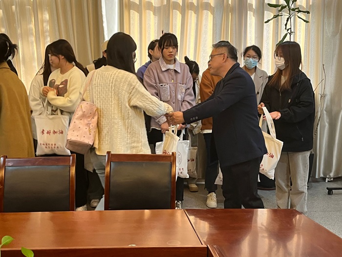 最后,伴随着上一届考研成功上岸同学们的祝福视频,学院领导为大家分发“考研加油包”,其中包含的橙子和柿饼寓意着“心想事成”和“事事如意”。希望各位同学能够在考研中披荆斩棘,不断创造佳绩!