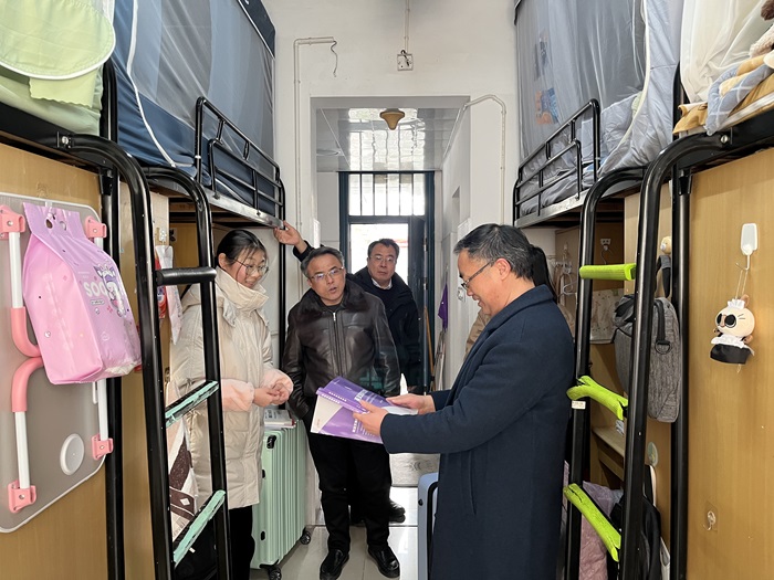 走访过程中,院领导们详细询问并查看了学生宿舍管理情况,依次走进了多间宿舍。王毅慰问关心同学们的假期生活状况,表达了学院对同学们的亲切关怀。张鑫聆听同学们对新学期的规划和想法,鼓励他们以崭新的精神风貌全身心投入到学习中去。李晓曼就平时的学习生活情况与同学们做了交流,并提醒同学们注意宿舍安全,严禁使用违章电器,同时做好卫生保洁,共同创造一个温馨舒适的宿舍环境。李世存鼓励同学们积极做好课程预习,在大学里收获丰富的知识,同时加强体育锻炼,保持阳光、积极、乐观向上的心态。同学们也积极与老师进行了交流,大家表示将会保持良好的身心状态,以饱满的热情投入到新学期的学习生活中。