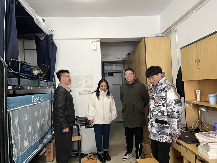 为深入了解学生开学阶段的思想状态和适应情况,2月25日下午,外国语学院党委书记王毅,院长张鑫,党委副书记兼副院长李晓曼,副院长李世存和全体辅导员老师共同深入学生宿舍,与学生面对面了解详细情况,解决实际问题。