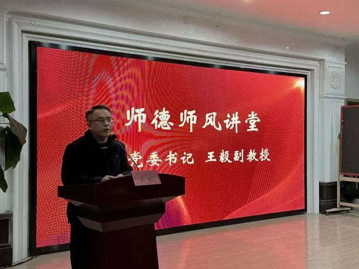 王毅带领大家共同学习了《中共中央国务院关于全面深化新时代教师队伍建设改革的意见》《教育部等七部门印发〈关于加强和改进新时代师德师风建设的意见〉的通知》等加强师德师风建设的有关文件。回顾了党的十八大以来,习近平总书记对广大教师提出了“四有”好老师、“四个引路人”、“大先生”等殷切期盼。师者,用爱心、知识、智慧点亮学生心灵,其职业特殊性对教师的职业道德修养提出了更高要求。他强调,师德师风建设与学生健康成长、国家前途、民族未来息息相关,必须努力对照师德标准认真学习,以“教育家精神”引领培养师范生卓越成长,做到经师和人师的相统一。