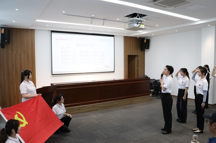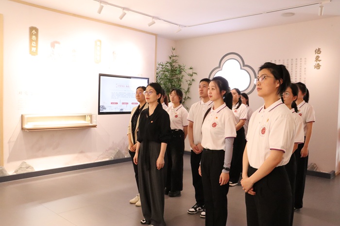 在廉洁从业集体宣誓环节,毕业班党员面向党旗庄严承诺,将不诱于誉的清醒认知转化为拒腐防变的行动自觉。活动最后,全体师生党员实地参观“儒风清韵”廉洁教育基地。