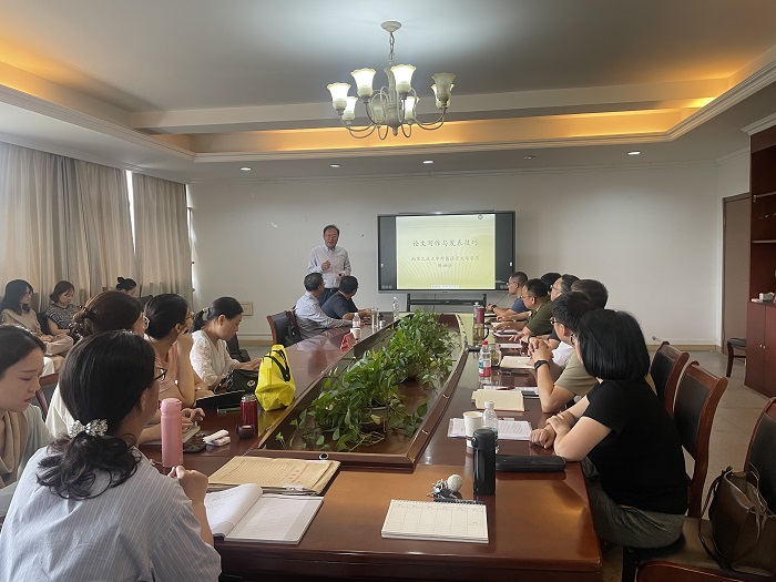 9月24日上午,外国语学院在外语楼210会议室举办“学术论文写作与发表技巧”专题讲座,邀请南京工业大学外国语言文学学院院长陈世华教授担任主讲嘉宾。讲座由外国语学院院长张鑫主持,学院党委书记书记王毅、副院长杨国萍、部分教师代表、2025级翻译硕士学生代表参加讲座。