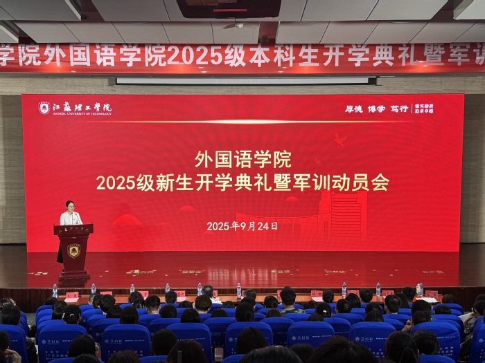 9月24日下午四点,外国语学院2025级本科生开学典礼暨军训动员大会在图书馆报告厅北厅隆重举行。外国语学院党委书记王毅、院长张鑫、党委副书记兼副院长李晓曼、副院长李世存、各系部主任、全体辅导员、新生班主任、导生和2025级全体新生出席了此次活动。本次活动由外国语学院党委副书记兼副院长李晓曼主持。