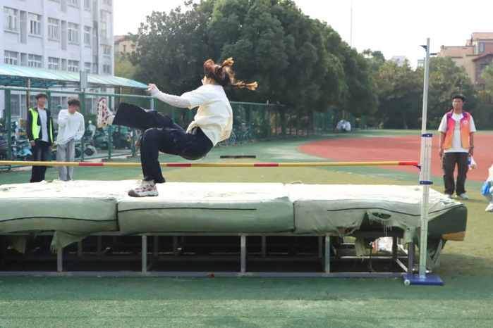 在田赛场地,实心球、铅球、跳远和跳高等比赛如火如荼地进行。这是一场力量和技巧的比拼:助跑、发力,实心球、铅球在空中掷出一一道道优美的弧线。在跳高、跳远比赛中,运动员们以灵动的身姿和坚定的毅力不断挑战极限高度。他们跑步冲刺,猛跃而起,神情中透露出果敢与坚定,每一次落地都是对自己的华丽超越,生动诠释了“更快、更高、更强”的奥林匹克精神。我院学子在这些项目中脱颖而出,在多个项目中斩获桂冠。