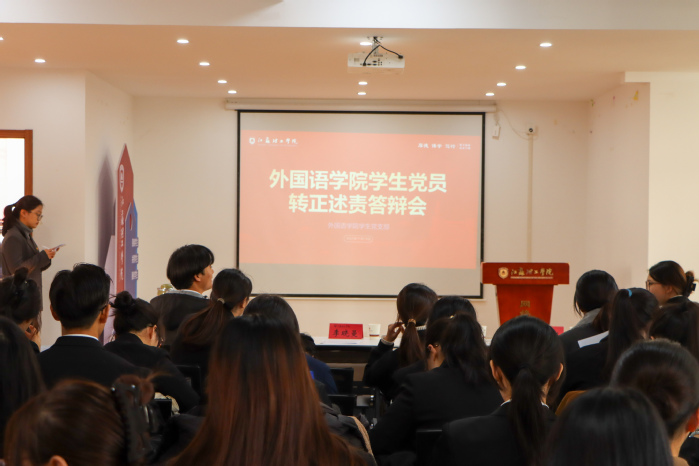 为进一步加强学生党员队伍建设,全面考察预备党员预备期的政治素养、理论基础、实践担当和先锋作用,11月19日下午,外国语学院学生党支部于38号楼一站式社区网络思政中心举办预备党员转正述责答辩会。校关工委“银发悦龄”志愿服务团成员、“银讲汇”项目讲述人胡维芳教授、学院党委副书记兼副院长李晓曼、学生党支部副书记陈子薇担任评委。