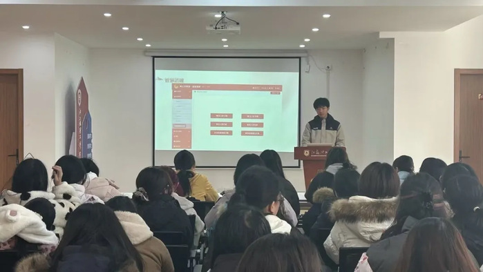 在技能培训环节中,团务部副部长陈天如就团日活动照片的拍摄规范、活动感想的撰写要求进行了详细讲解,并结合常见错误案例进行了纠正说明。随后,彭易萱演示了智慧团建系统中团员信息录入等关键操作步骤,并重点强调了注意事项。最后,贲翔宇就团费缴纳流程、入团申请书的书写规范与提交方式等核心工作要点作了系统解读