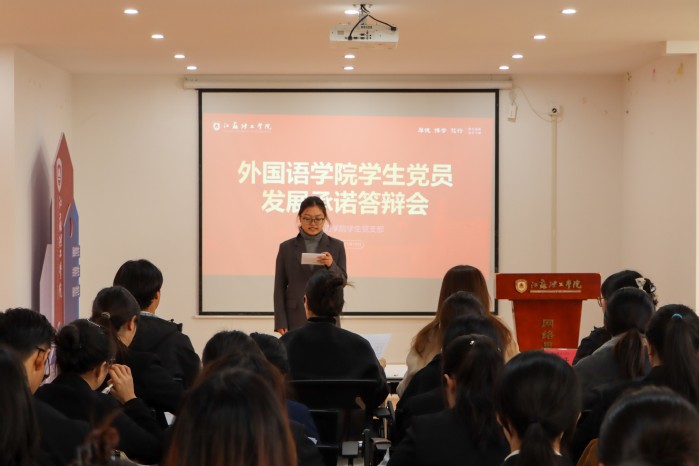 为严格党员发展程序,全面考察发展对象入党动机、政治素养及先锋作用发挥情况,11月19日中午,外国语学院学生党支部在38号楼一站式社区召开学生党员发展承诺答辩会。此次答辩会特邀校关工委“银发悦龄”志愿服务团成员、“银讲汇”项目讲述人胡维芳教授、外国语学院党委副书记兼副院长李晓曼、院学生党支部副书记陈子薇等担任评委。