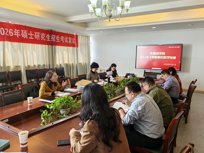 4月2日下午,校教学视导组专家来外国语学院对2025-2026学年第2学期期初教学工作进行了检查。外国语学院教学副院长杨国萍、各系部主任参加了本次检查。