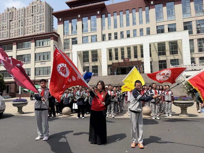 活动伊始,全体师生隆重举行出征仪式并进行队伍授旗。汉藏师生共举旗帜,结对成行,徒步前往常州烈士陵园。一路上,红旗飘扬,汉藏学生并肩前行,彼此交流学习与生活,讲述家乡的清明习俗与红色故事。短短几公里的毅行,不仅是对身体的锻炼,更是一次心灵的靠近,在共同前行中,两地学子情感交融,步伐坚定。
